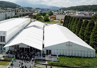 Wir bieten eine breite Palette an hochwertigen Zelten, die wir individuell auf Ihre Wünsche und Eventlocation anpassen. Unsere Zelte vereinen hohe Qualitätsstandards und Sicherheit mit Langlebigkeit und Nachhaltigkeit. Sie erfüllen die strengsten Sicherheitsstandards und erhalten bei Bedarf auch Küstenzulassungen, um den Anforderungen auch an exponierten Standorten gerecht zu werden.