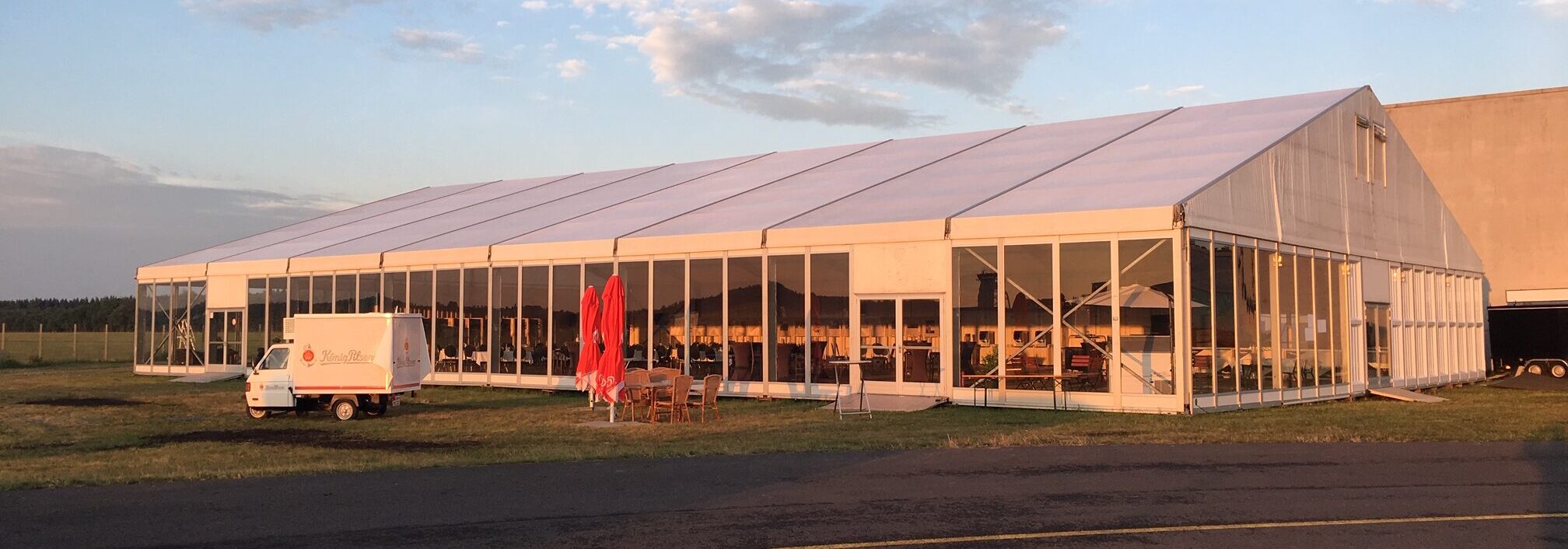Mit ihrer Vielfalt an Größen, Ausführungen und Elementen lassen sie sich flexibel an jede Veranstaltung und Anforderung anpassen. Für weitläufige und große Veranstaltungen, die Platz für viele Möglichkeiten erfordern. Wir bieten Zelte mit bis zu 50 m Breite und bis zu 200 m Länge.